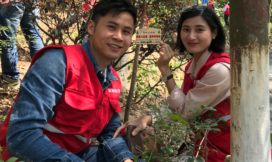 一個個樹坑挖成,一棵棵樹苗的栽下,象征著一份份綠色希望;每一滴汗水的流下,每一鏟泥土的填充,則代表著每一個人的奉獻與關愛。經過一番辛苦的勞動,小樹苗種好了,大家紛紛與小樹合影。