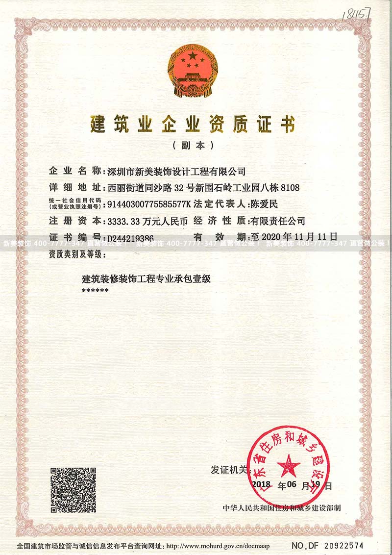 建筑裝修裝飾工程專業(yè)承包資質(zhì)壹級