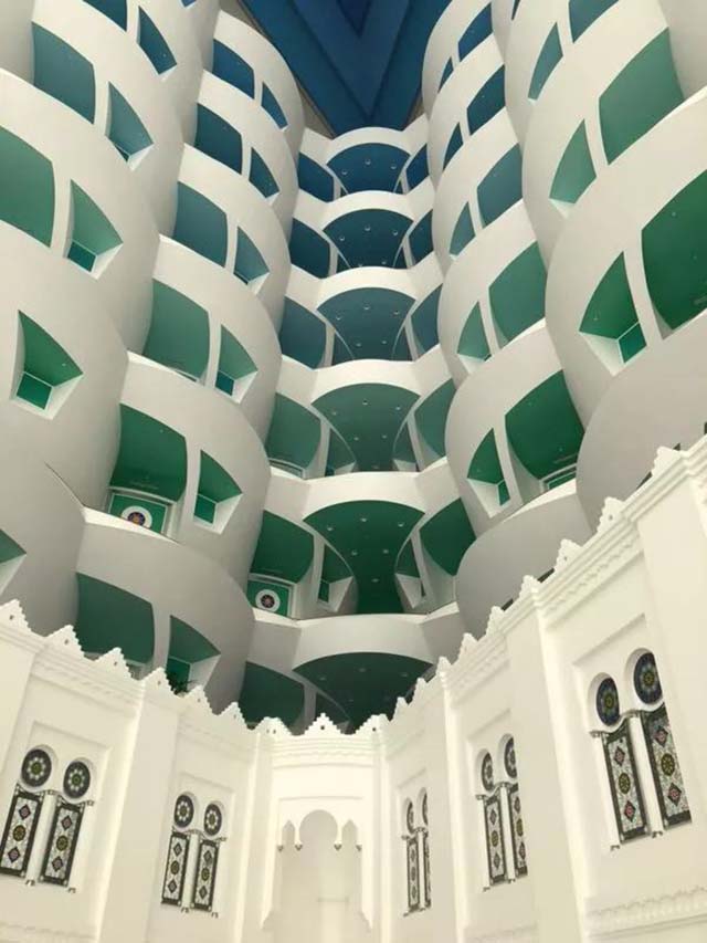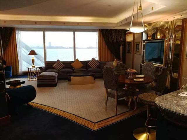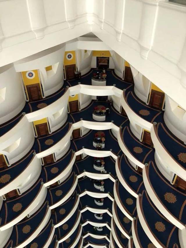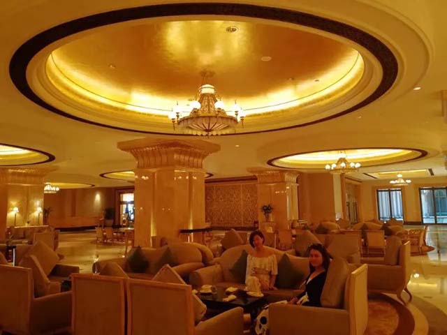 酒店的裝修用的全部是最新材料和技術,飯店的圓頂用最新照明技術、防腐特殊材料和純金制造,一到晚上就會自動發光,金光閃閃,永不掉色。