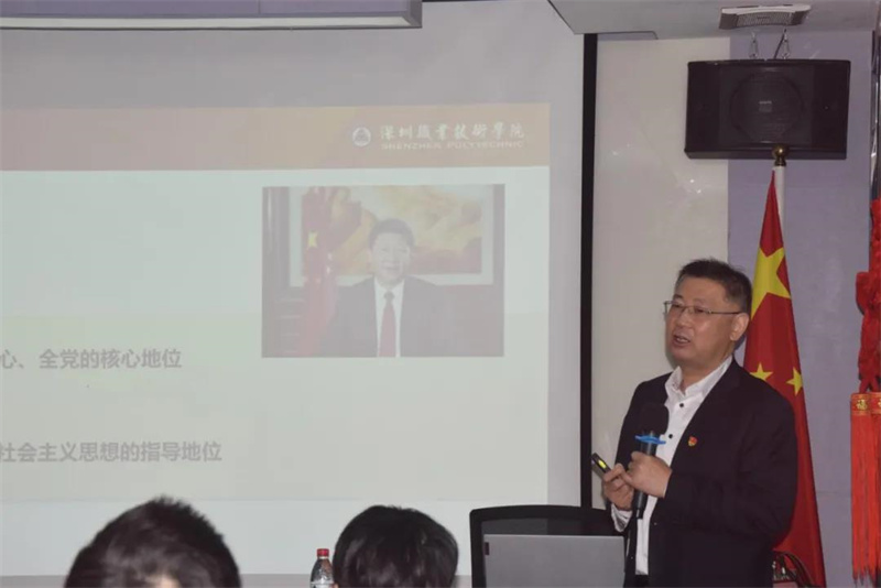隨后,為持續(xù)推進(jìn)學(xué)習(xí)和宣傳貫徹黨的十九屆六中全會精神的走深走實,會議特邀深圳市黨代表、深圳職業(yè)技術(shù)學(xué)院楊欣斌書記,做十九屆六中全會精神解讀專題授課。楊書記以“十九屆六中全會精神的數(shù)字密碼——準(zhǔn)確把握《中共中央關(guān)于黨的百年奮斗歷史重大成就和歷史經(jīng)驗的決議》的精髓要義”為題,進(jìn)行了深入淺出的解讀,讓參會人員更系統(tǒng)、更全面、更深入地了解了黨的十九屆六中全會的重要成果及影響。