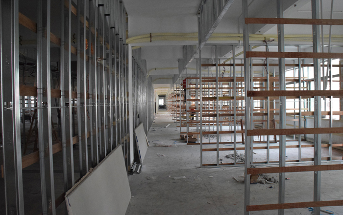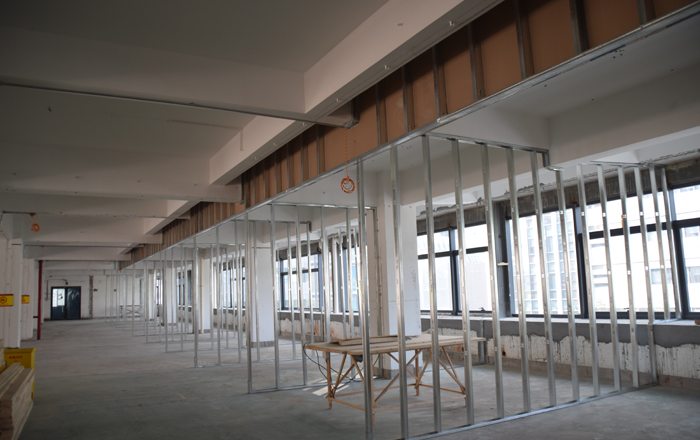 ▼ 2017年02月11日,輕鋼龍骨隔墻。